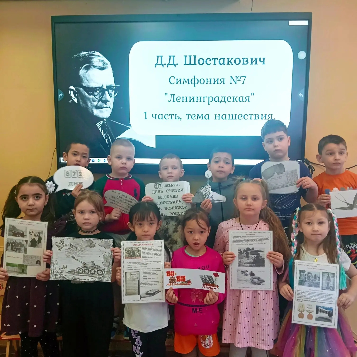 На этой встрече ребята познакомились с историей блокады и узнали о мужестве и стойкости ленинградцев, которые пережили это тяжелое время. Особое внимание было уделено знакомству с Ленинградской симфонией Дмитрия Шостаковича, написанной в 1941 году. Эта симфония стала символом сопротивления и силы духа, вдохновляя людей на борьбу с врагом.